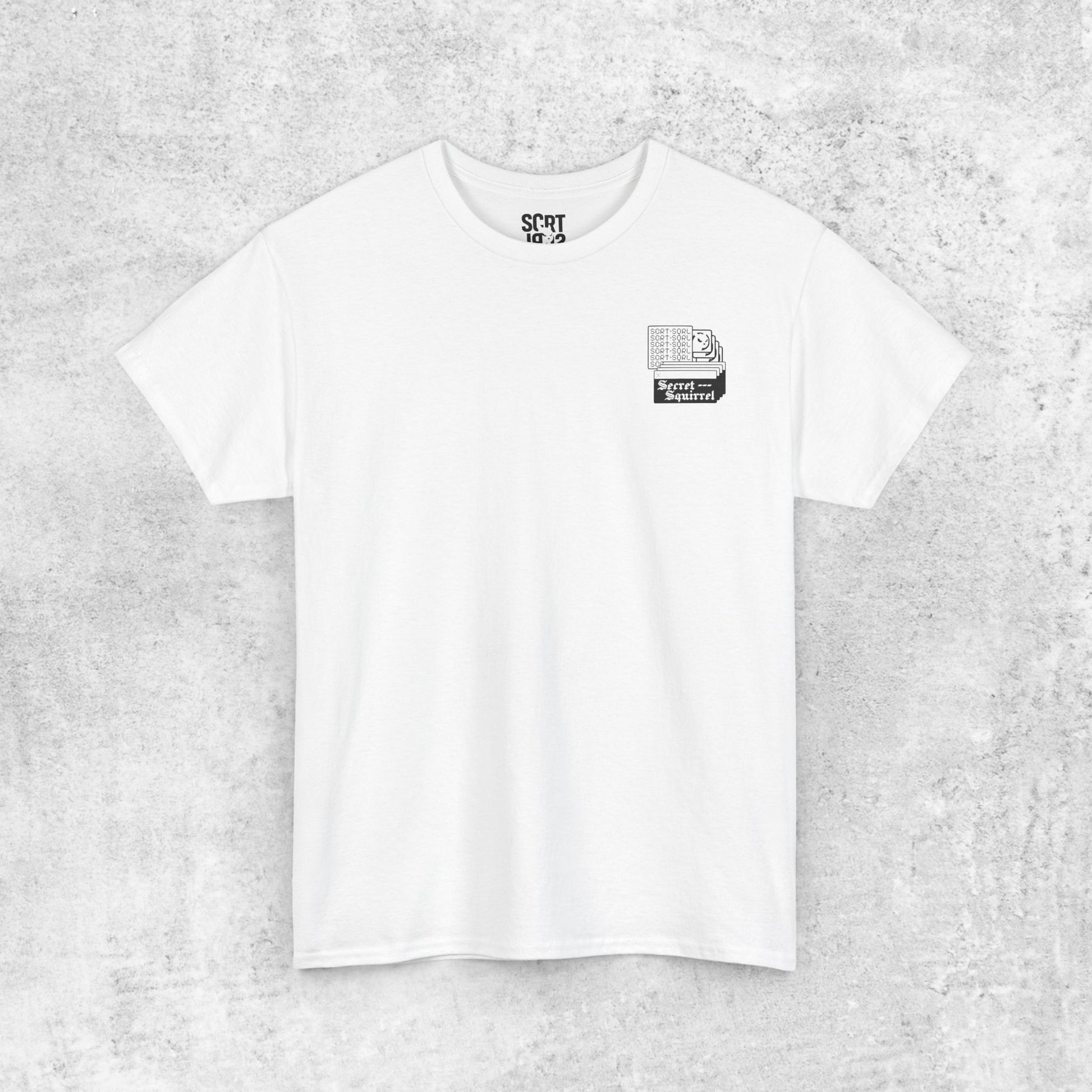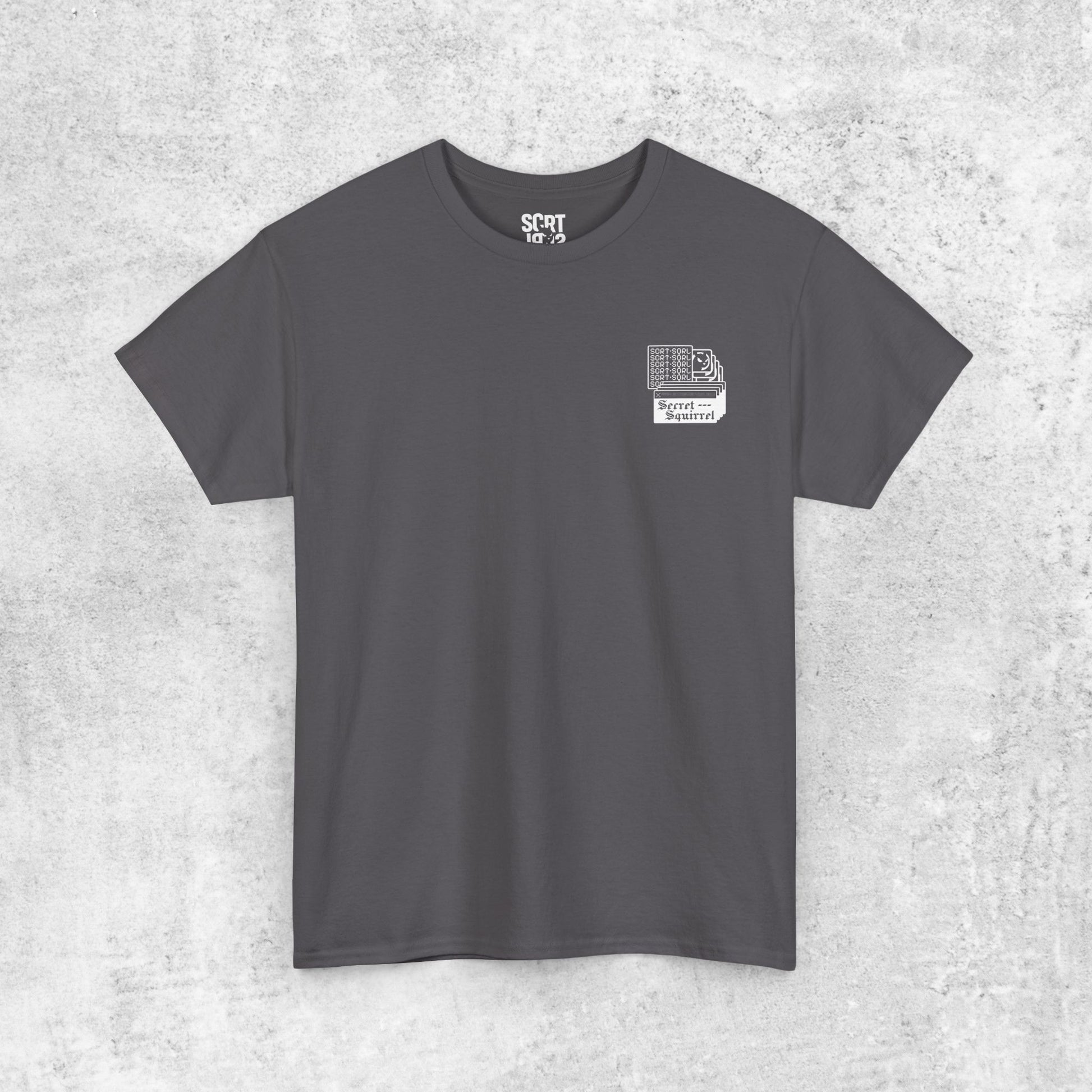 From “GAME OVER” popups to security warnings and forgotten log files, every pixel of this print whispers: nothing lasts foreve; so disrupt while you can. Topped with a back-neck SCRT SQRL logo, it’s the digital equivalent of wearing your last words on your chest.
